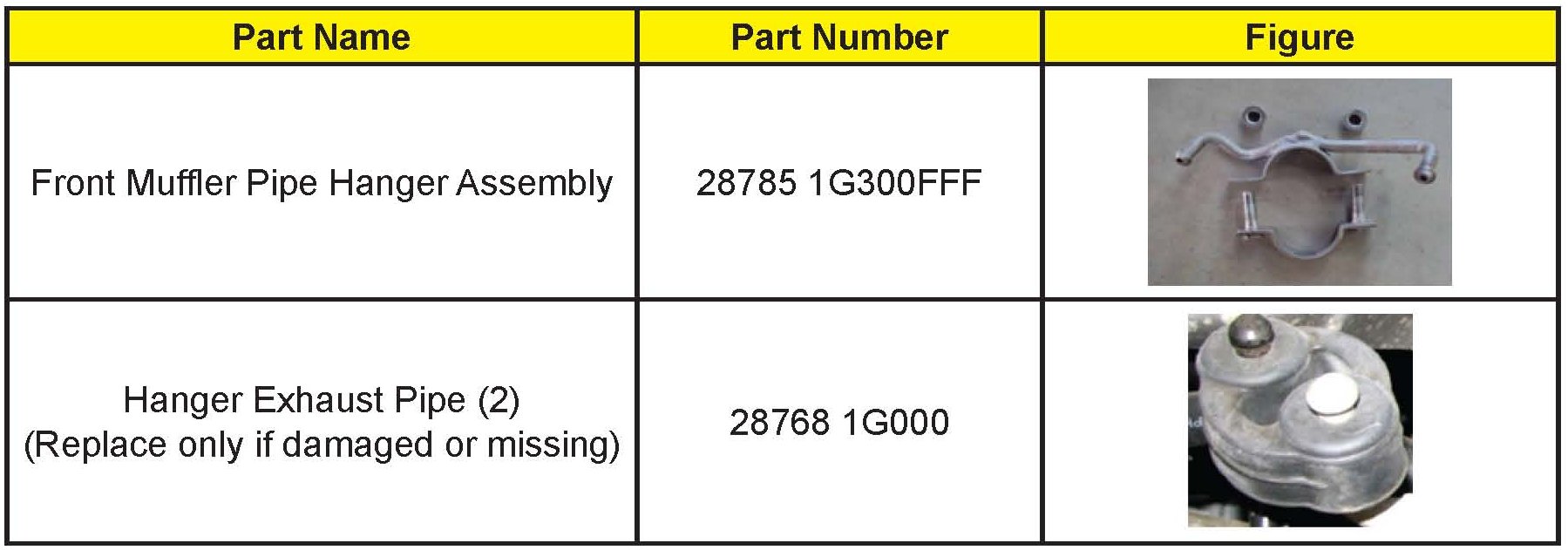 To correct this condition without replacing the front muffler pipe assembly Kia is making a replacement bracket kit available as a service part Follow the procedure in this bulletin to install a new bracket