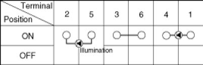 4. Using an ohmmeter, inspection the continuity between the terminals after removing to the switch connector.