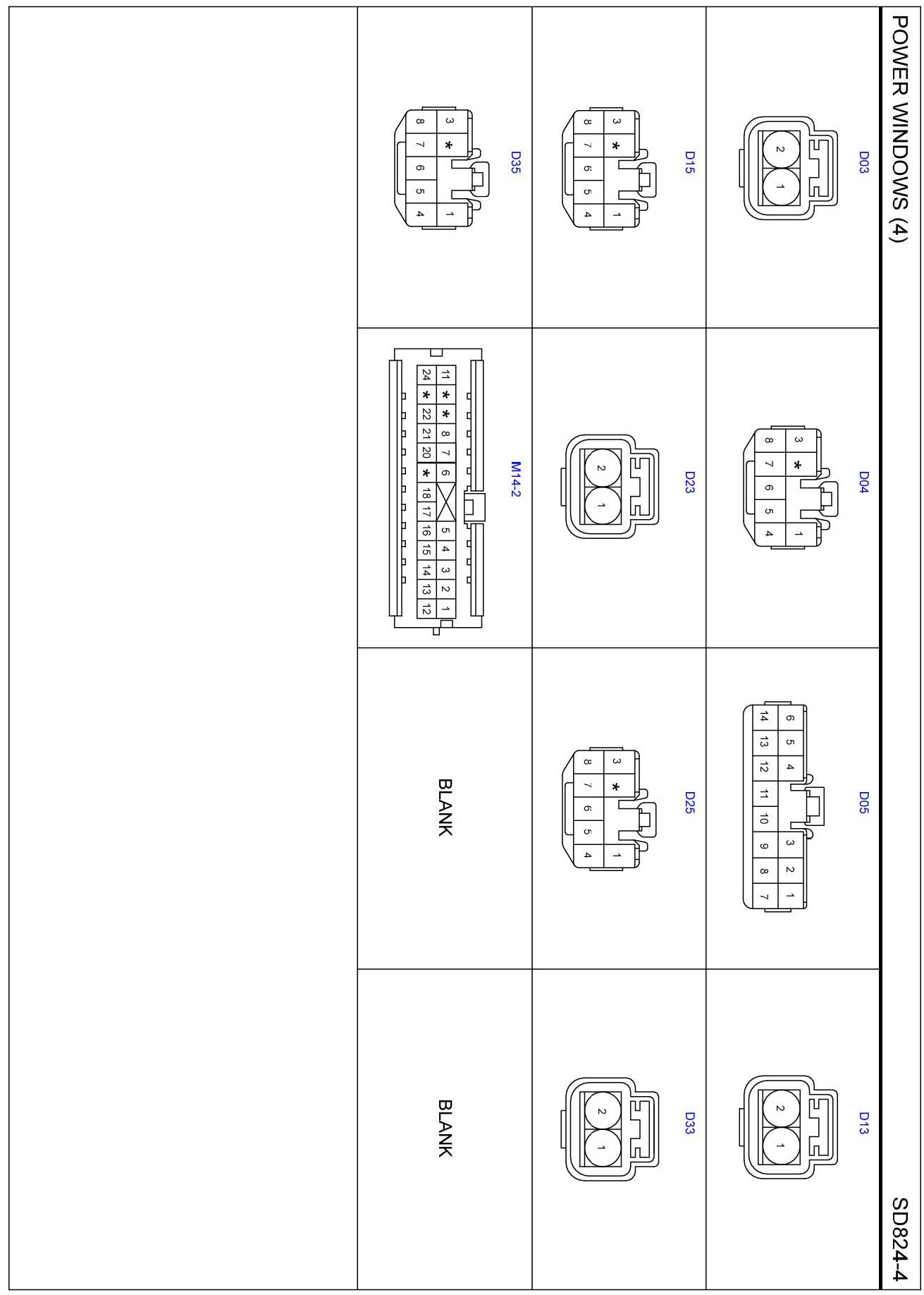 Power Windows (4) Connector Pin Outs:
