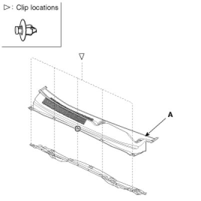 Detach the clips, then remove the cowl top cover (A).