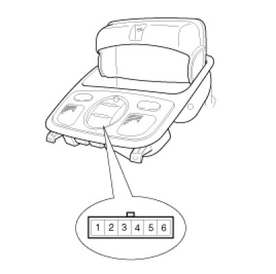 2. Open the sunglass case cover from the overhead console then remove the 2 screws holding the overhead console. Disconnect the switch connector (6P) and Map lamp connector, and then remove the overhead console lamp (A).