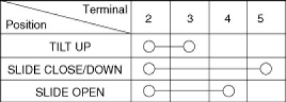 3. Check for continuity between the terminals. If the continuity is not as specified, replace the sunroof switch.