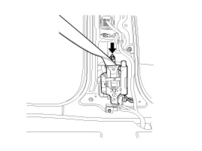 7. Loosen the Seat Belt Pretensioner mounting bolt and remove the Seat Belt Pretensioner.