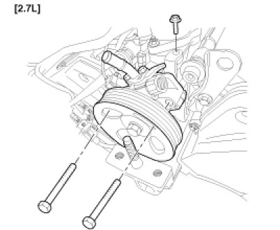 3. Loosen the mounting bolts and then remove the power steering pump.