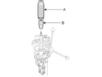 7. Fully extend the piston rod and then install the strut bearing (B) and the insulator (A).