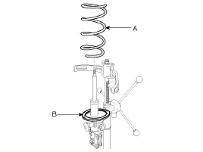 5. Install the spring upper pad (B) and seat (A).