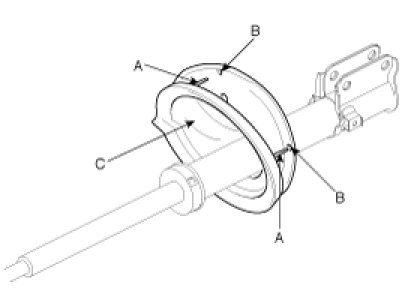 2. Install the spring lower pad (C) so that the protrusions (A) fit in the holes (B) in the spring lower seat.