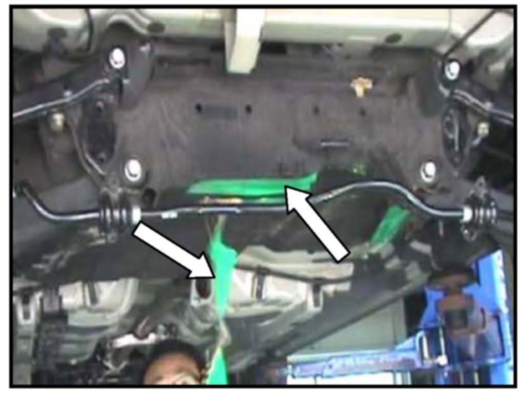 5. Remove the four (4) 14 mm rear stabilizer bar mounting bolts on both sides, and then let the rear stabilizer bar hang down.