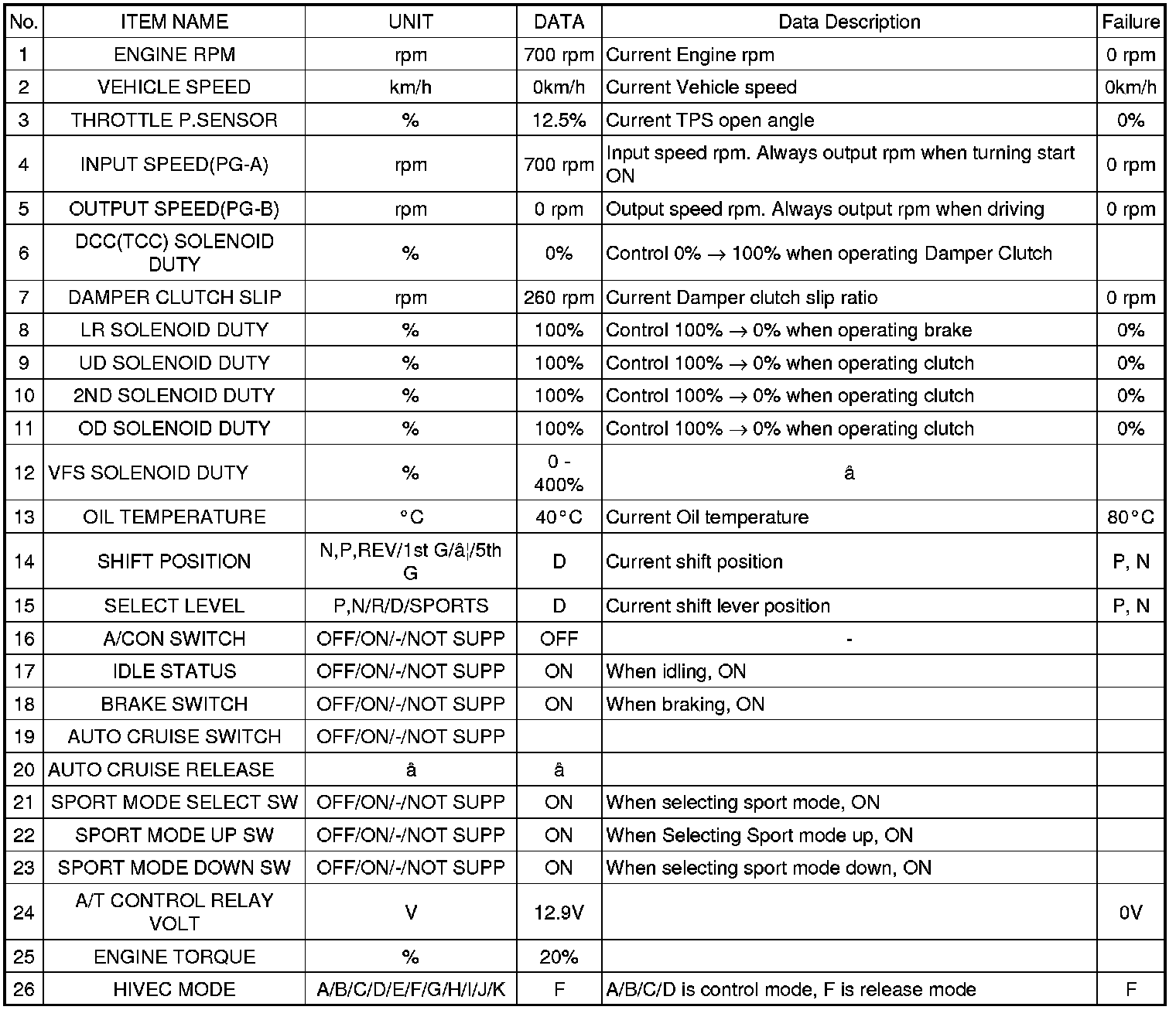 SERVICE DATA LIST(WITH SCAN TOOL)
