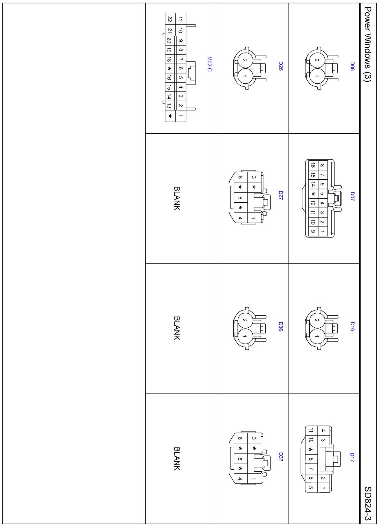 Power Windows (3) Connector Pin Outs: