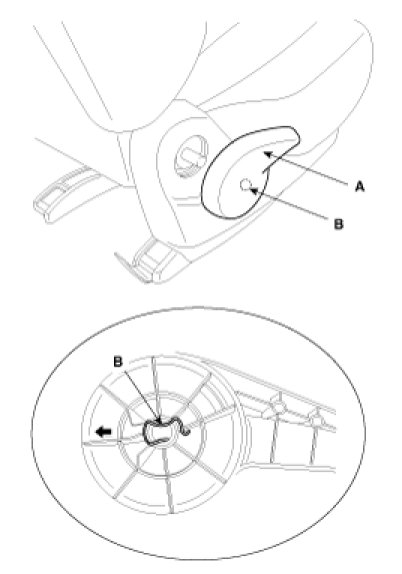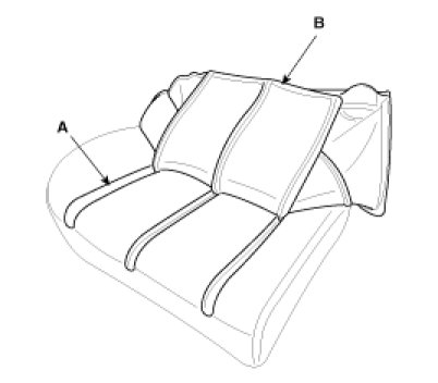 1. After puling the ribbon (A) remove the seat cushion (B).