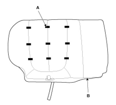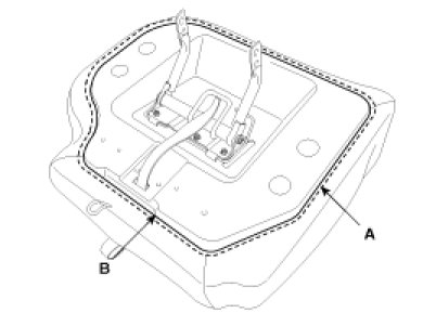 8. Disconnect the adhesives (A) on the front of seat cushion, remove the seat cushion cover (B).
