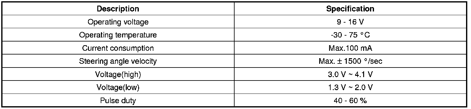 The split of the steering angle sensor detects a steering angle of the steering wheel by a ON/OFF pulse caused by whether or not the LED lights go through the hole of the split, rotating as the steering wheel revolves. There are three LEDs, two(ST1, ST2) for detecting a steering direction, and the other for the neutral position.The HECU calculates the steering angle by the pulse from the steering angle sensor.