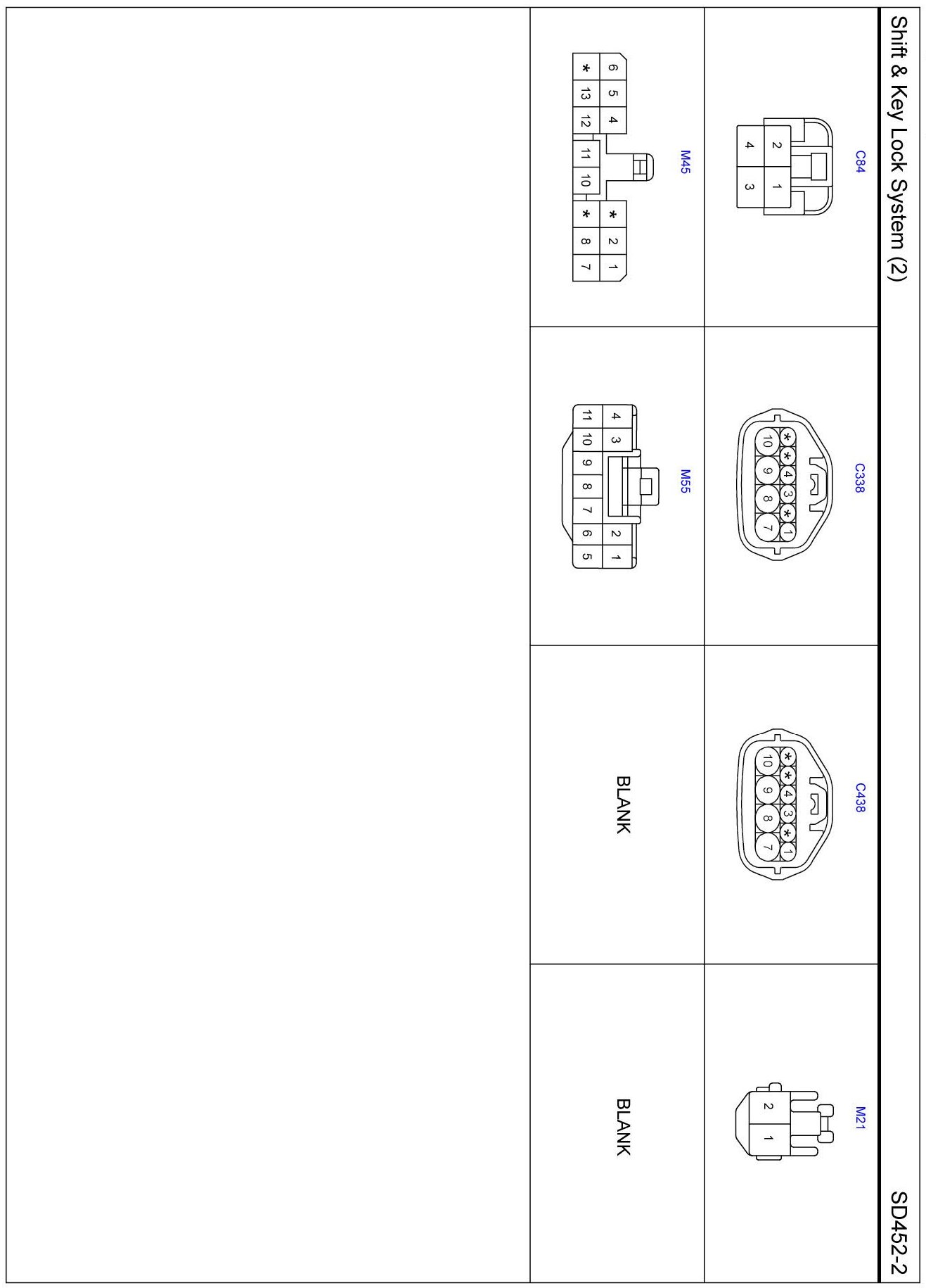 Shift And Key Lock System (2) Connector Pin Outs: