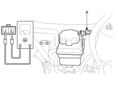 1. Remove the connector (A) from the switch located at the brake fluid reservoir.