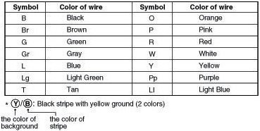 The following abbreviations are used to identify wire colors in the circuit schematics.