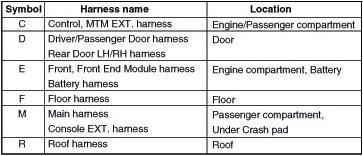 * It depends on vehicles, it is necessary to check the harness name symbol on the harness layouts for detailed symbol.
