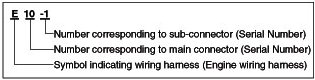 A connector identification symbol consists of a wiring harness location classification symbol corresponding to a wiring harness location and number corresponding to the connector.