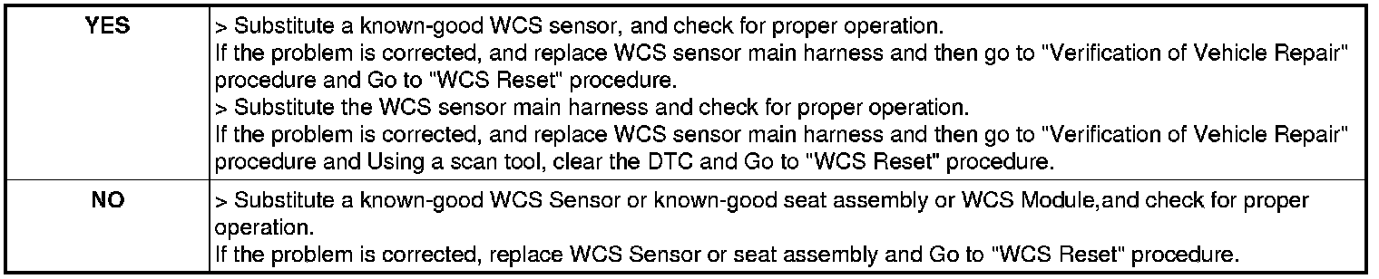 5. Substitute the WCS sensor or WCS Module and check for proper operation.