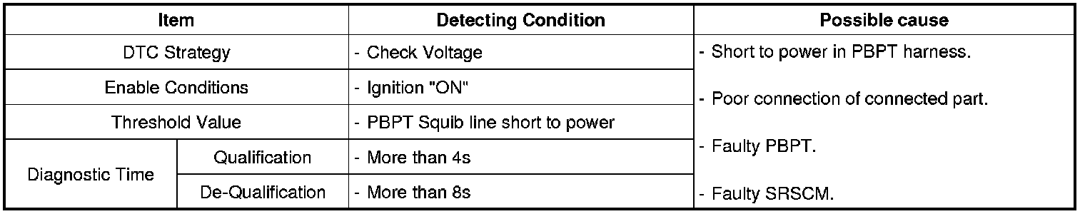 The SRSCM sets DTC B1370 if there is a short to power in PBPT harness.