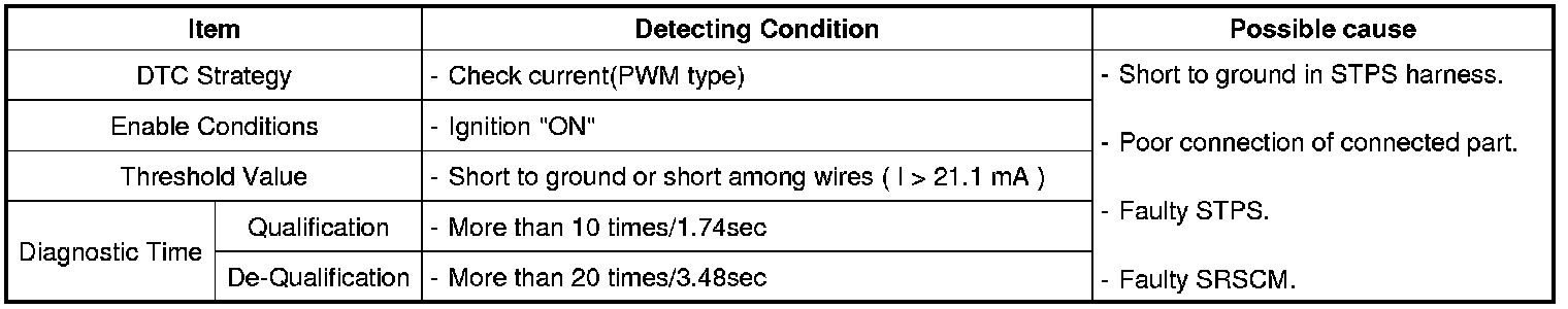 The SRSCM sets DTC B1387 if there is a short to ground in Driver STPS harness.