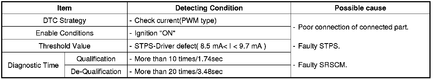 The SRSCM sets DTC B1389 if there is any fault in STPS circuit.