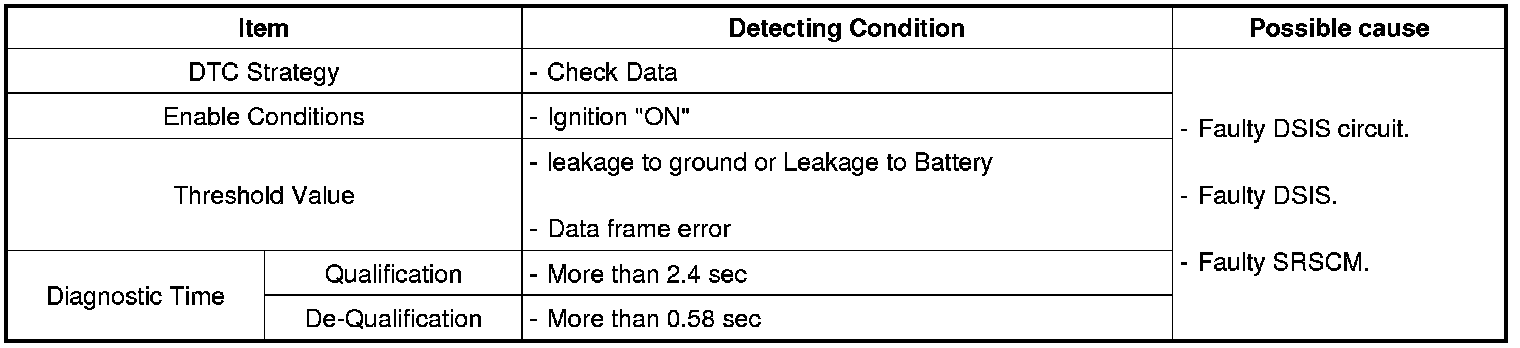 The SRSCM sets DTC B1409 if there is any error in communication between DSIS and SRSCM.