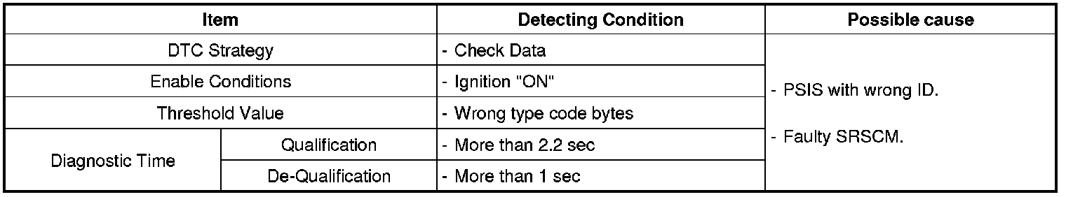 The SRSCM sets DTC B1415 if PSIS with wrong ID is detected.