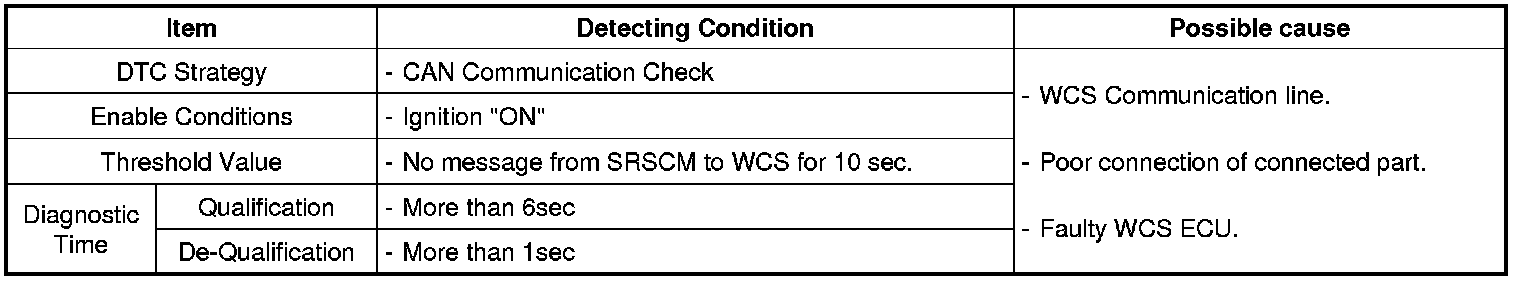 This code is outputted when WCS can't receive data from SRSCM by CAN Line for 10 sec.
