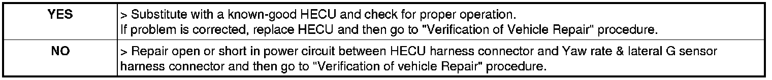 2. Measure voltage between power terminal of the Yaw rate & lateral G sensor harness connector and chassis ground.
