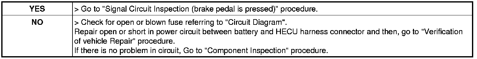 Signal Circuit Inspection (brake pedal is pressed)
