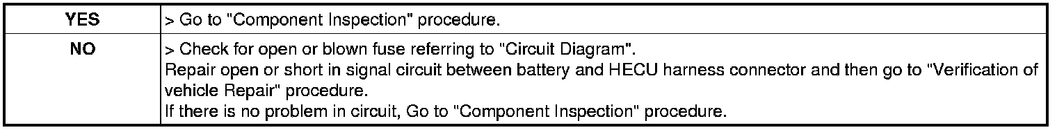 2. Measure voltage between stop lamp switch (brake switch) terminal of the HECU harness connector and chassis ground.