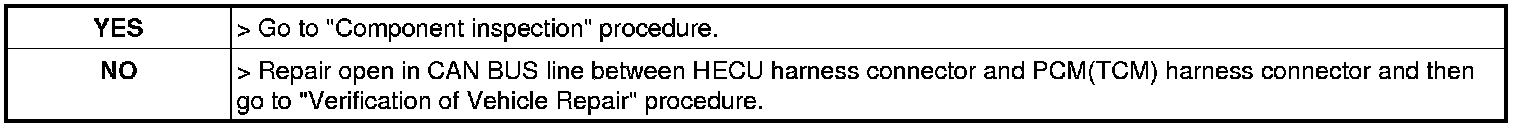3. Measure resistance between CAN HIGH terminal (LOW terminal) of the HECU harness connector and CAN HIGH terminal (LOW terminal) terminal of the PCM (TCM) harness connector.