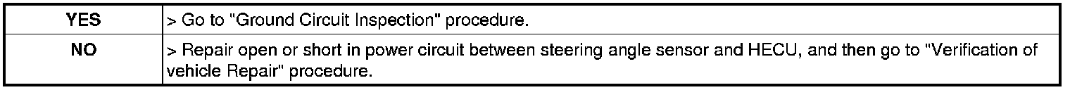 4. Measure voltage between power terminal of the steering angle sensor harness connector and chassis ground.