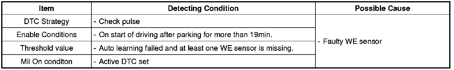 This DTC indicates that A failure of Auto-learning happens when less than WE sensors were learned.