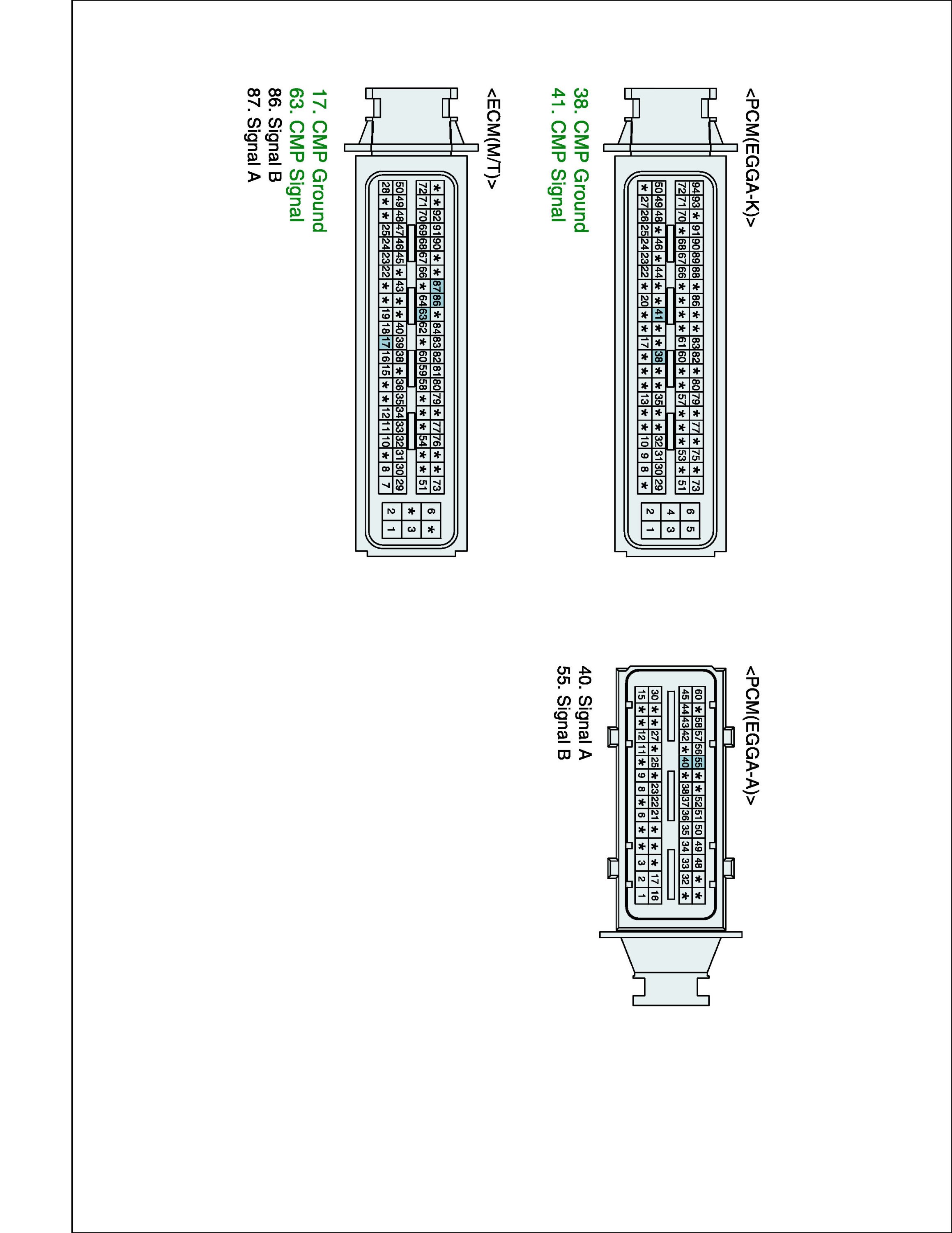 4. Measure the voltage between Power, Signal, Ground terminal of CMPS harness connector and chassis ground.