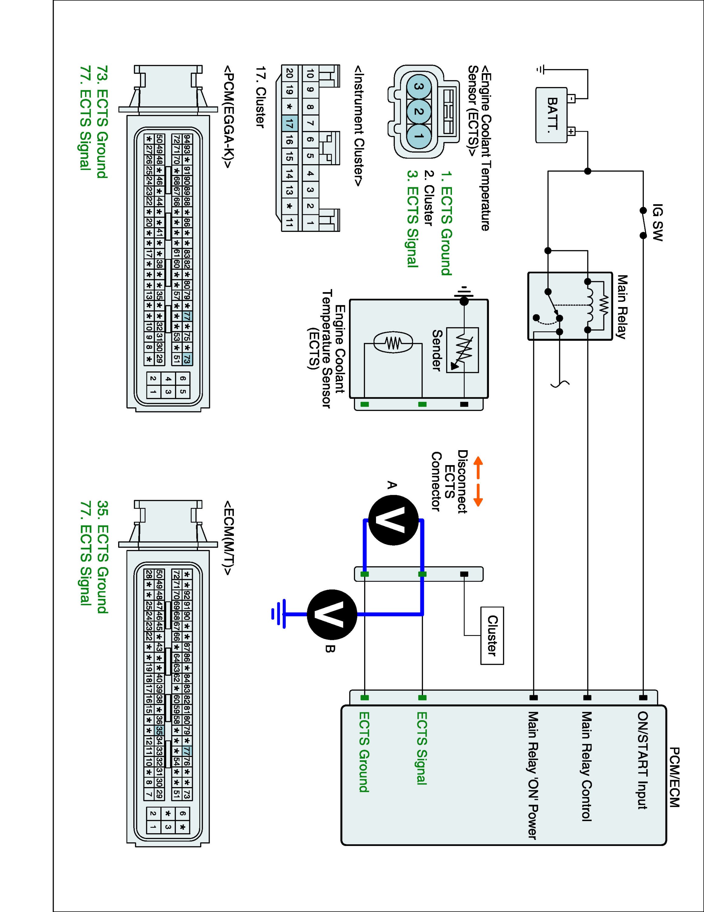 4. Measure voltage between signal terminal of ECTS harness connector and chassis ground.