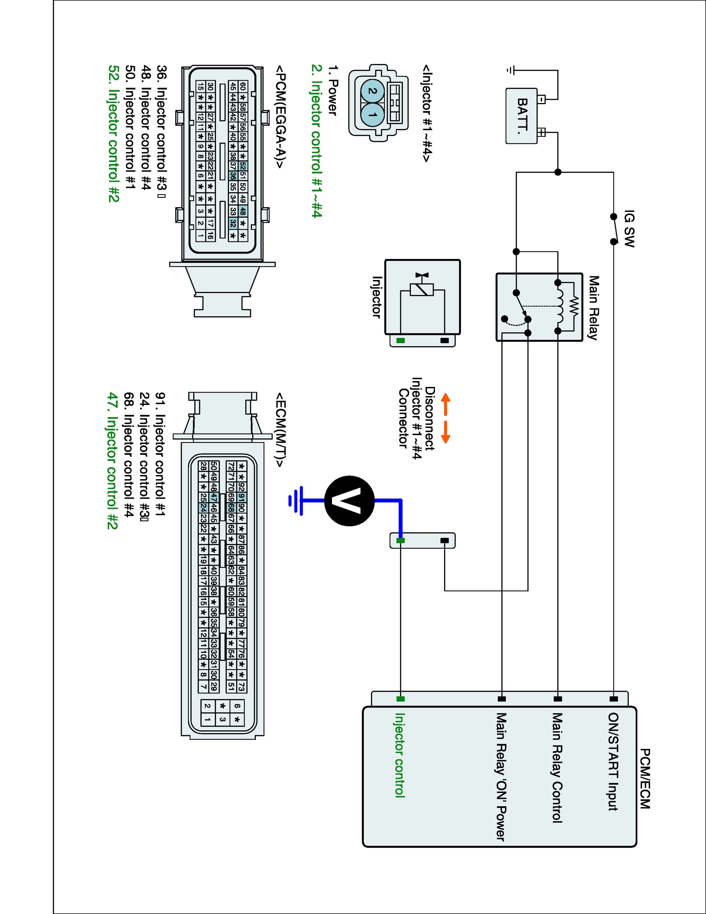 4. Measure the voltage between control terminal of injector harness connector and chassis ground.