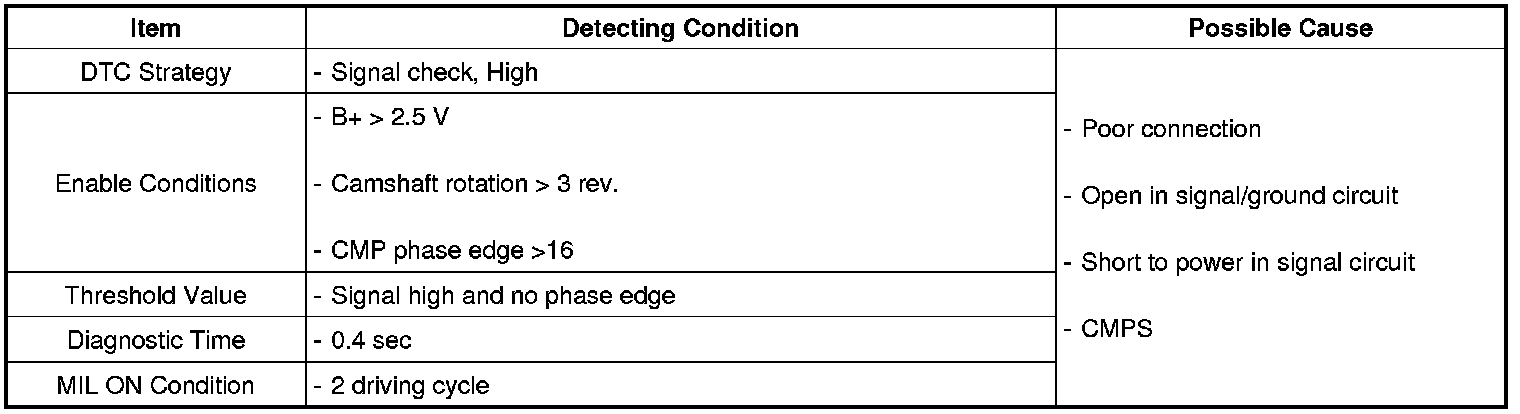 If the signal input is high with no phase edge, ECM sets DTC P0343.