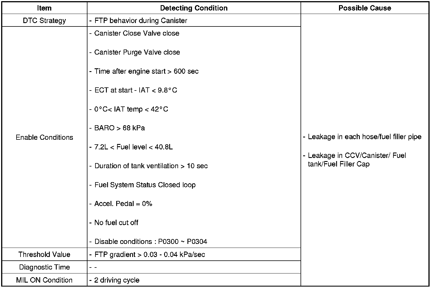 DTC Detecting Condition