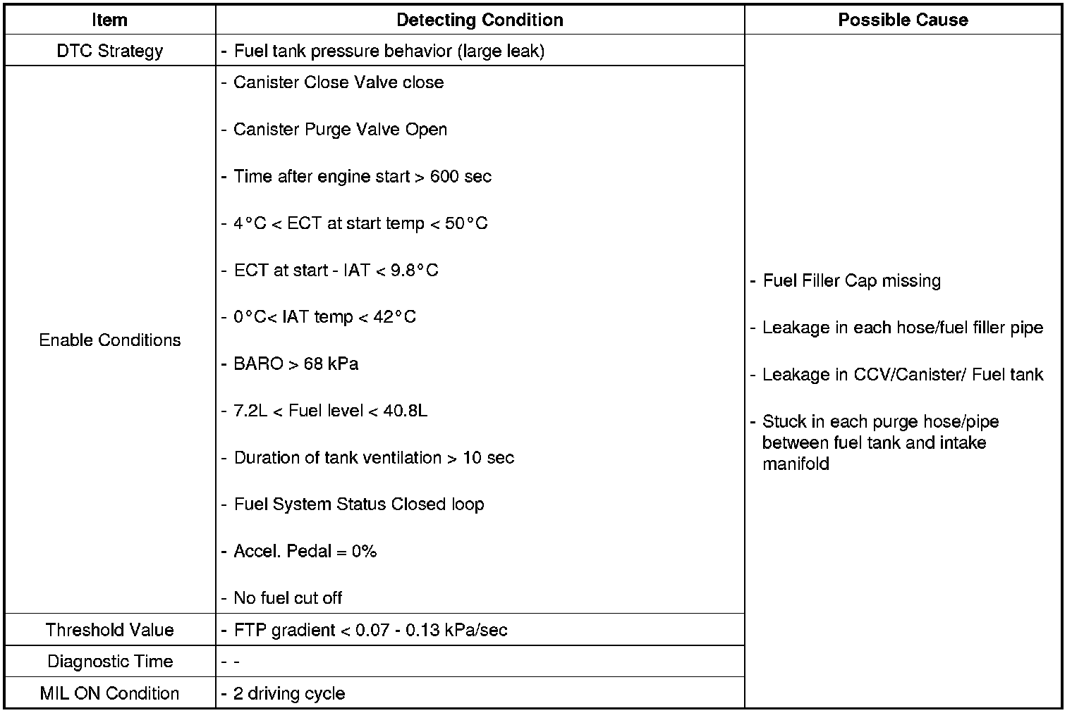 DTC Detecting Condition