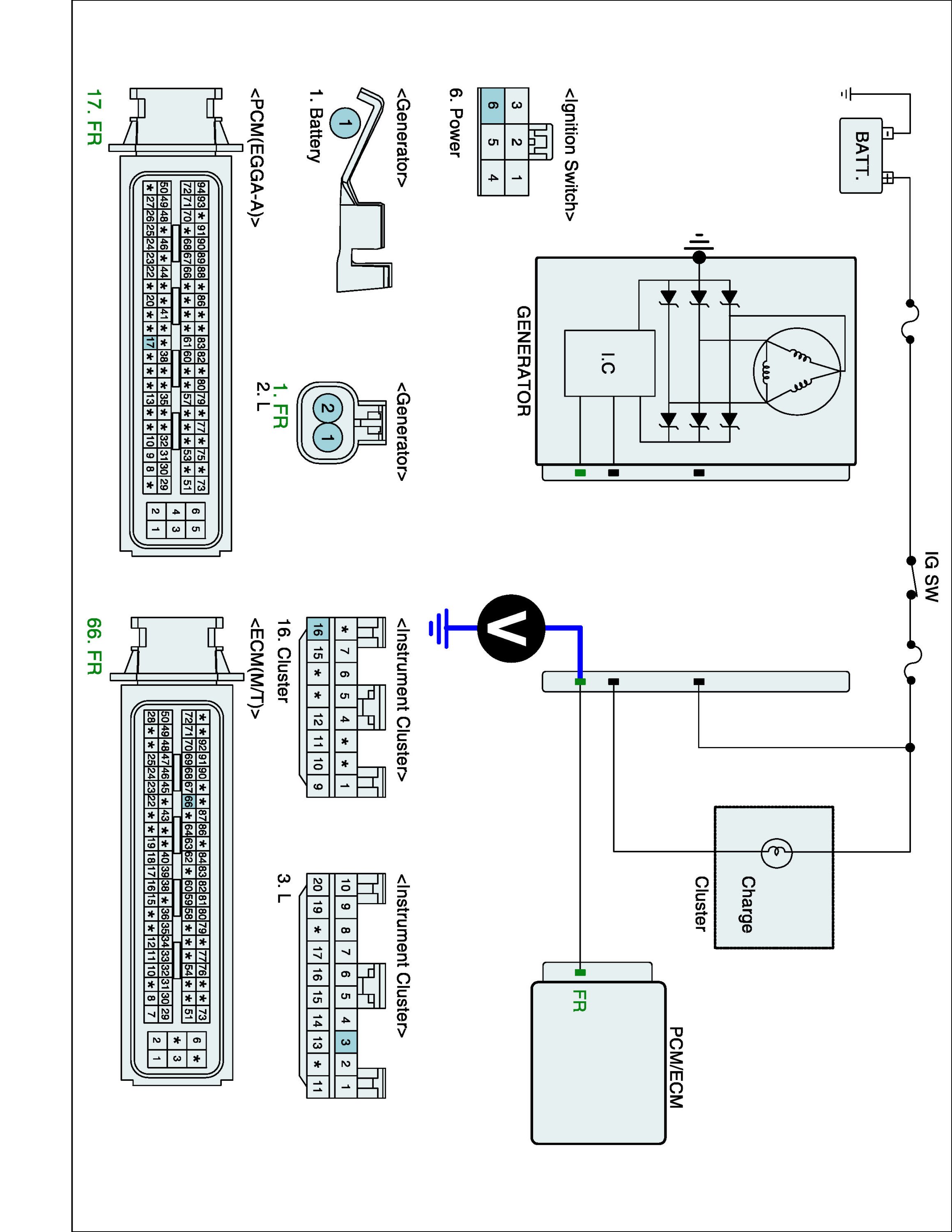 3. Measure voltage between FR terminal of the alternator harness connector and chassis ground.