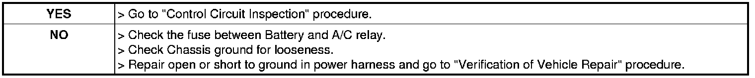 2. Measure the resistance between control terminal of A/C relay harness connector and chassis ground.