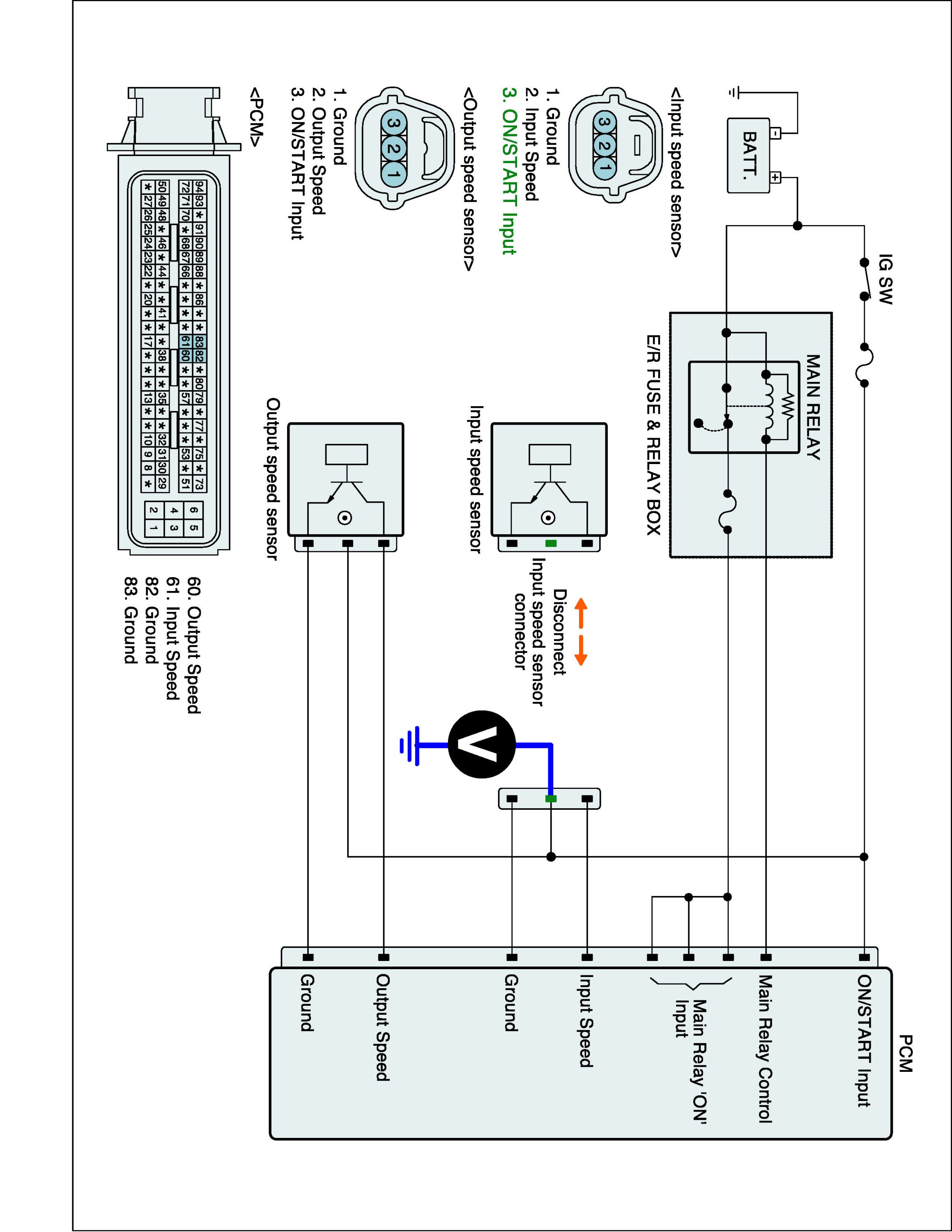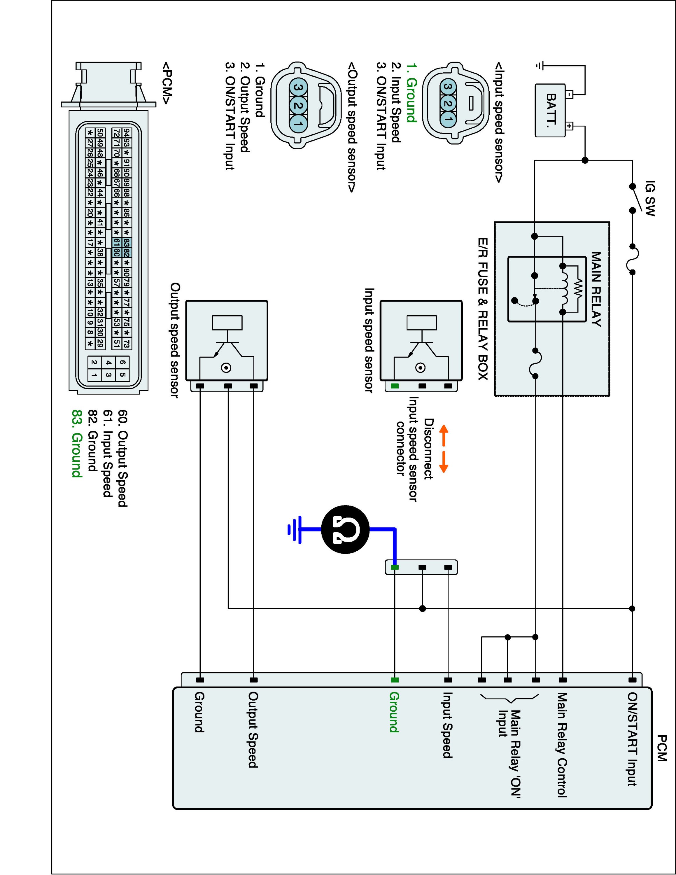 3. Measure resistance between "Ground" terminal of the INPUT SPEED SENSOR harness connector and chassis ground.