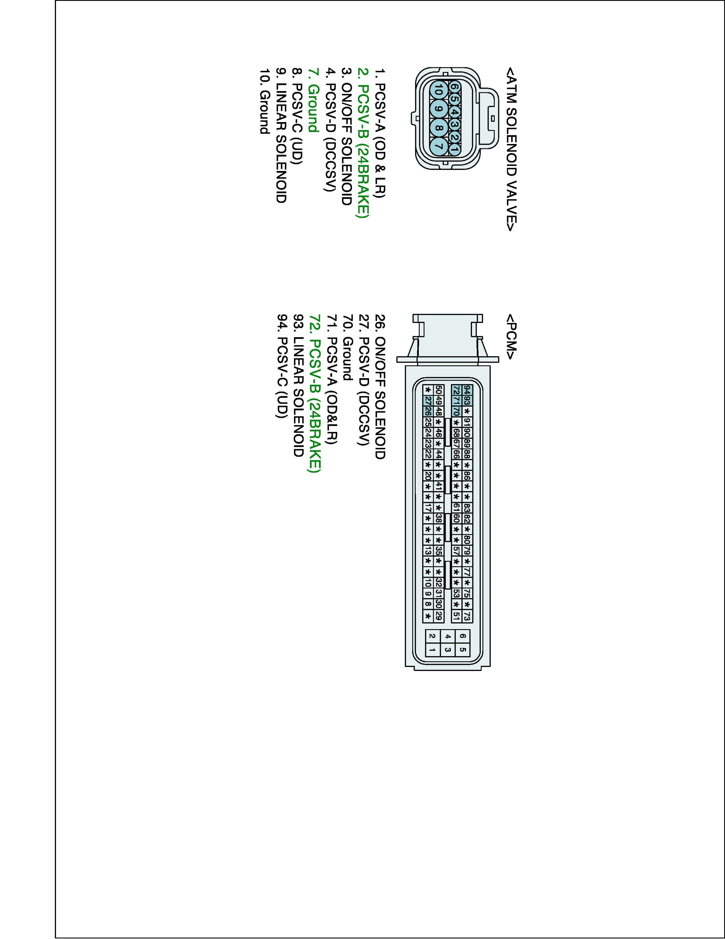 (3) Measure resistance between "PCSV-B (2-4BRAKE)" terminal and "Ground" terminal of the ATM SOLENOID VALVE harness connector