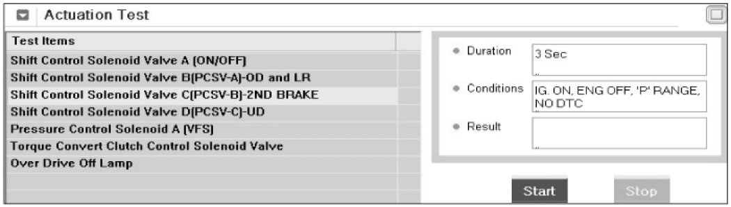 (3) Select A/T Solenoid valve Actuator test and Operate Actuator test.