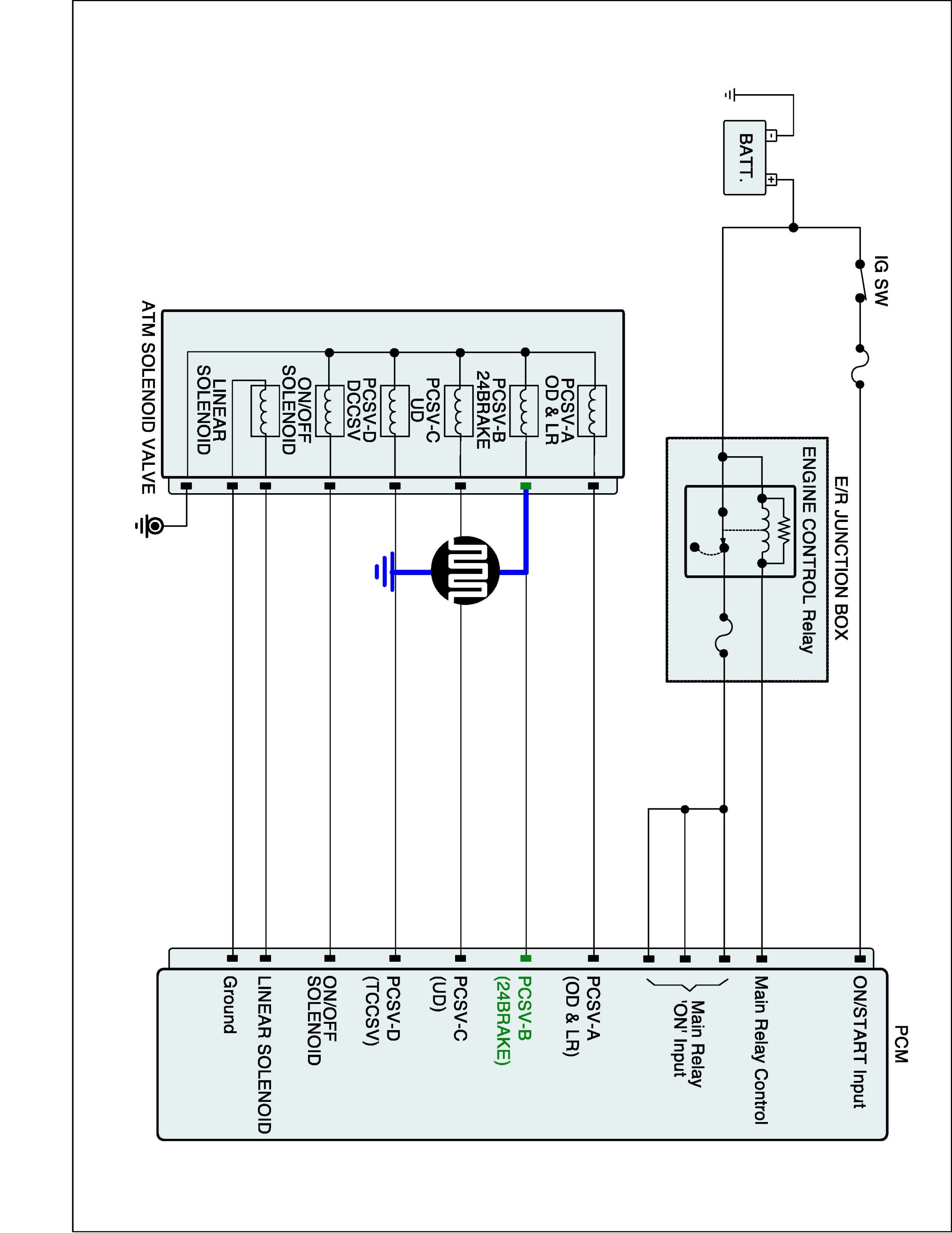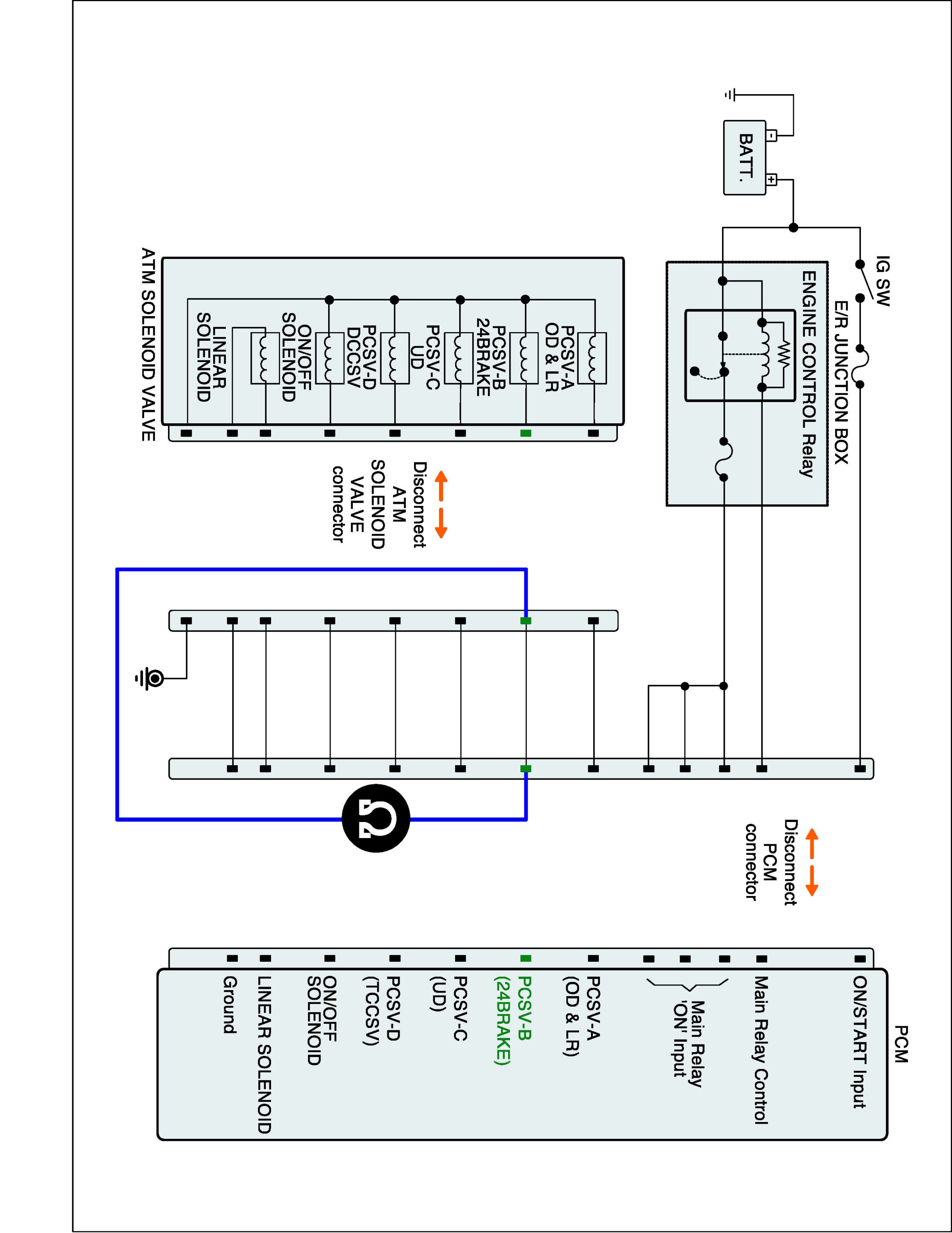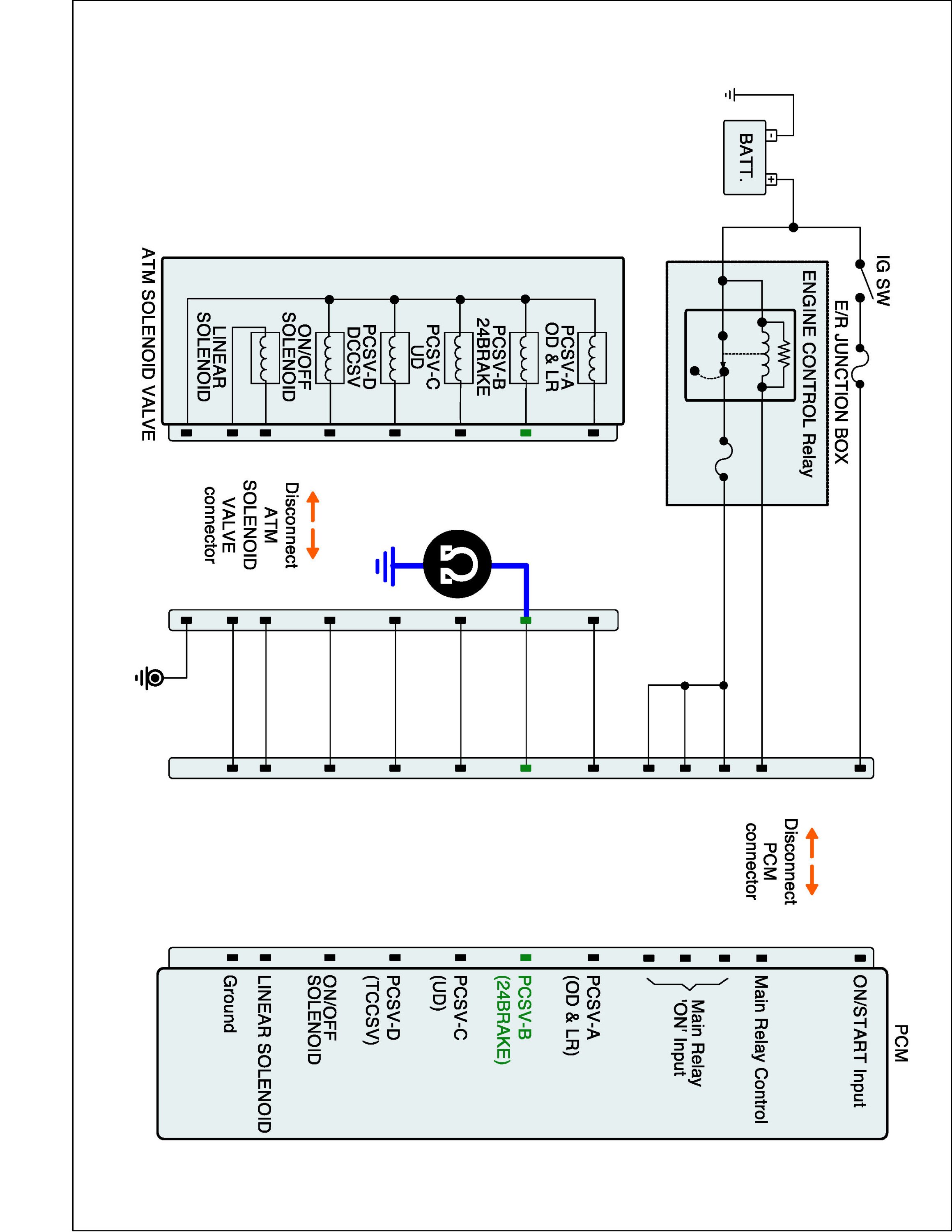 2. Disconnect "A/T SOLENOID VALVE" connector and "TCM (PCM)" connector.
