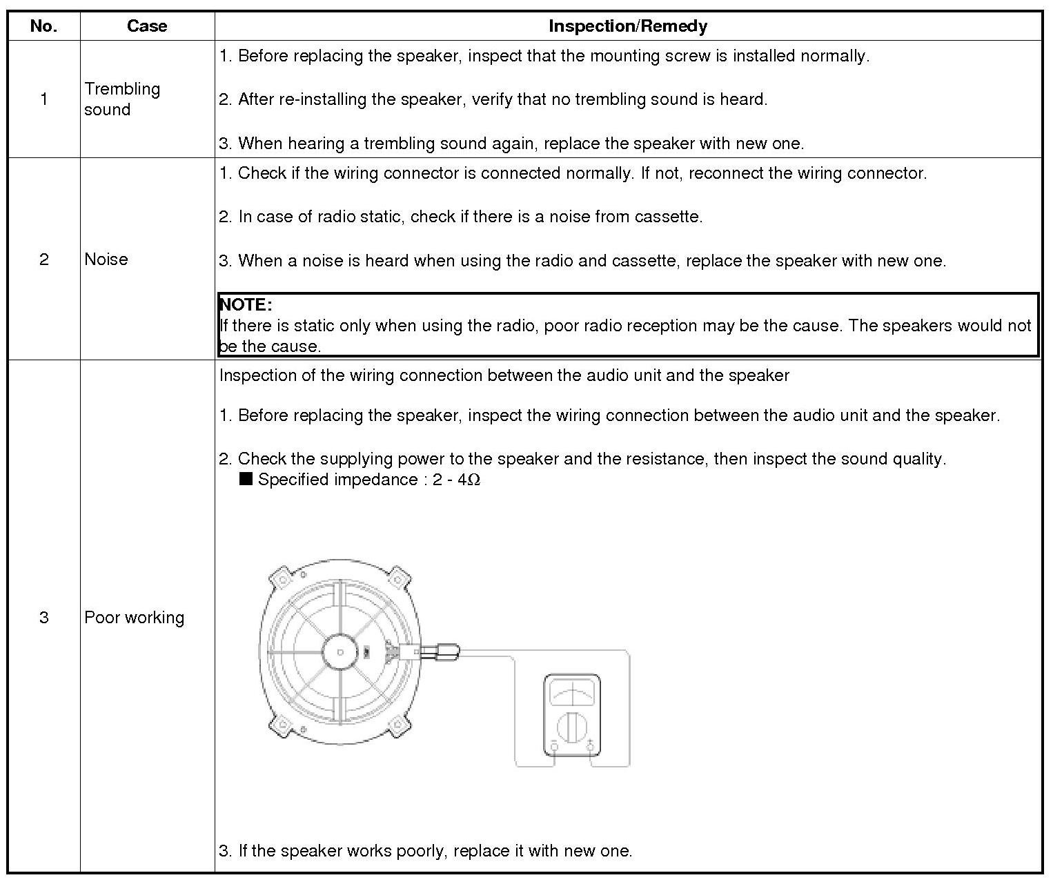 (1) Basic inspection of speaker