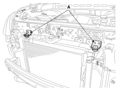6. Remove the radiator mounting brackets (A).