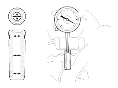 (1) Using a caliper gauge, measure the inner diameter of valve guide.